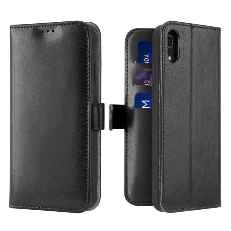 Nahkakotelo iPhone XR Magenta Musta Puhelinkuoret Kado-Sarja Dux Ducis