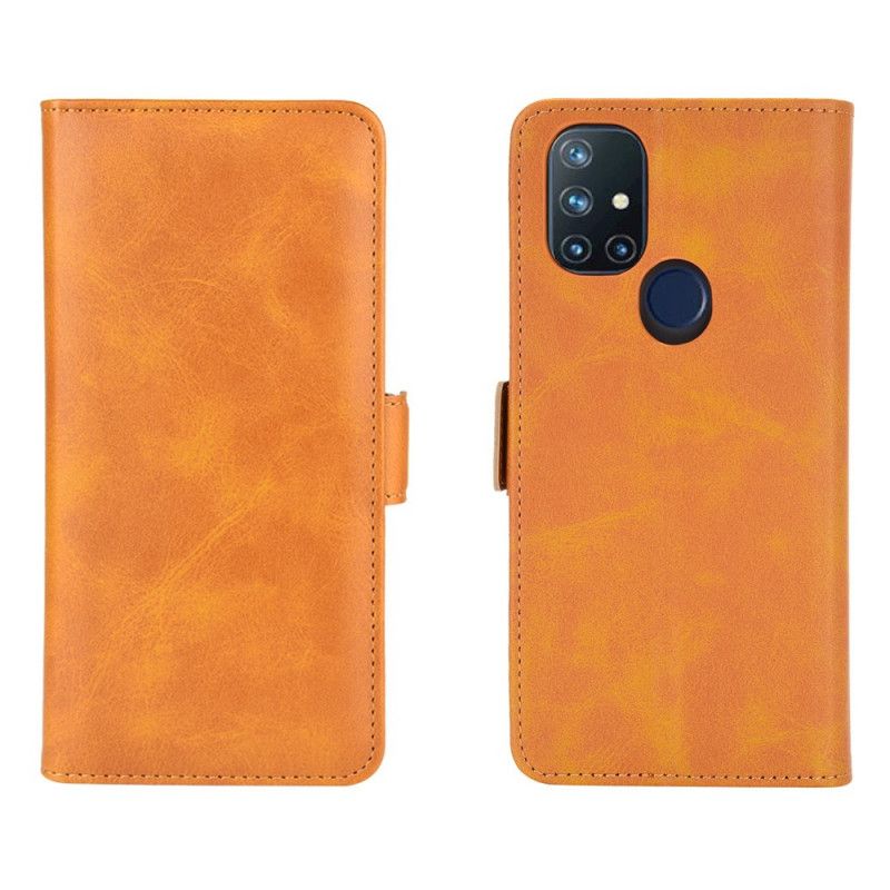 OnePlus Nord N10: n nahkajäljitelmäkansi sisältää suojauksen, korttipaikat ja yksinkertaisen sulkemisen.
