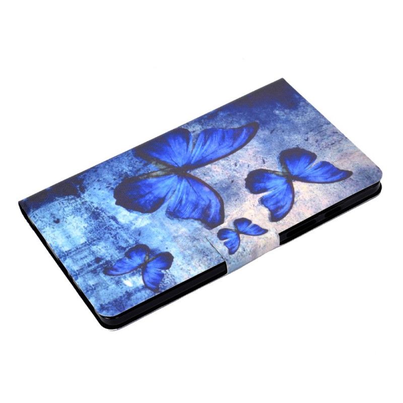 Samsung Galaxy Tab A 8.0 (2019) kotelon siniset perhoset, jotka on valmistettu kauniisti jälkimmäisen kannessa .