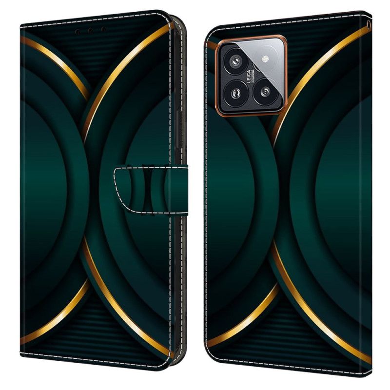 Xiaomi 14 Pro -Lompakkokotelomme Tarjoaa Selkeää Eleganssia 3D-Tulostetulla Kuviolla Ja Kullanvärisellä Ääriviivalla.
