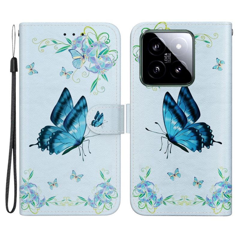 Nahkakotelo Xiaomi 14 Sininen Perhonen Ja Kukat