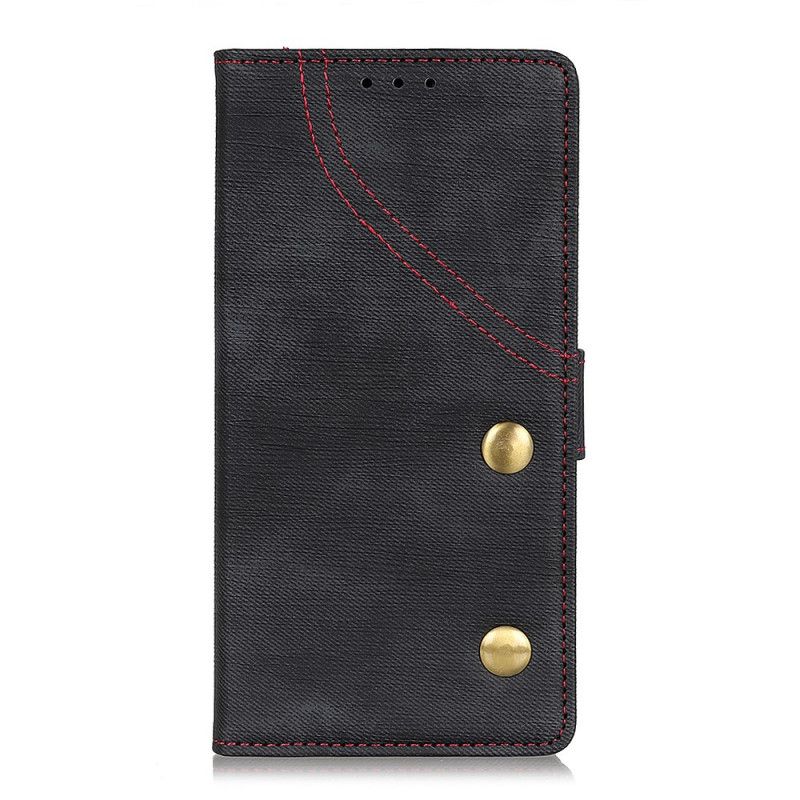 Nahkakotelo Xiaomi Redmi Note 8 Pro Punainen Musta Puhelinkuoret Farkunapit