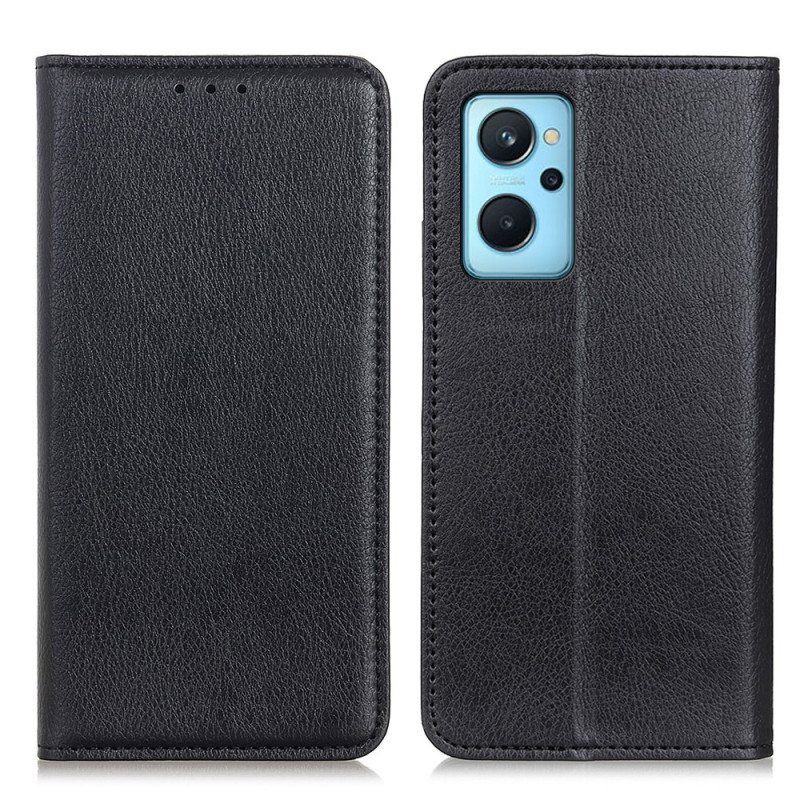 Tämä Litsi-Kuvioinen Haljasnahkainen Läppäsuojus Suojaa Realme 9I:Tä Tyylikkäästi.
