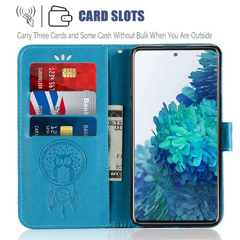 Upea nahkainen kotelo Samsung Galaxy S20 FE: lle, jossa on unensieppaaja ja hyväntahtoinen pöllö.